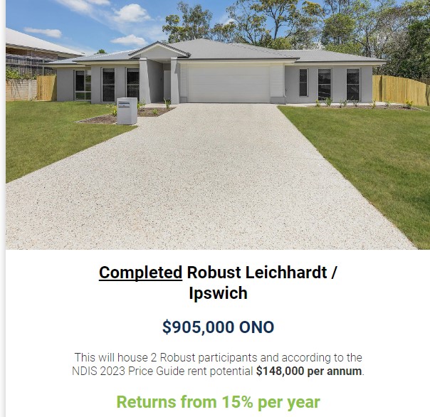 This will house 2 Robust participants and according to the NDIS 2023 Price Guide rent potential $148,000 per annum.